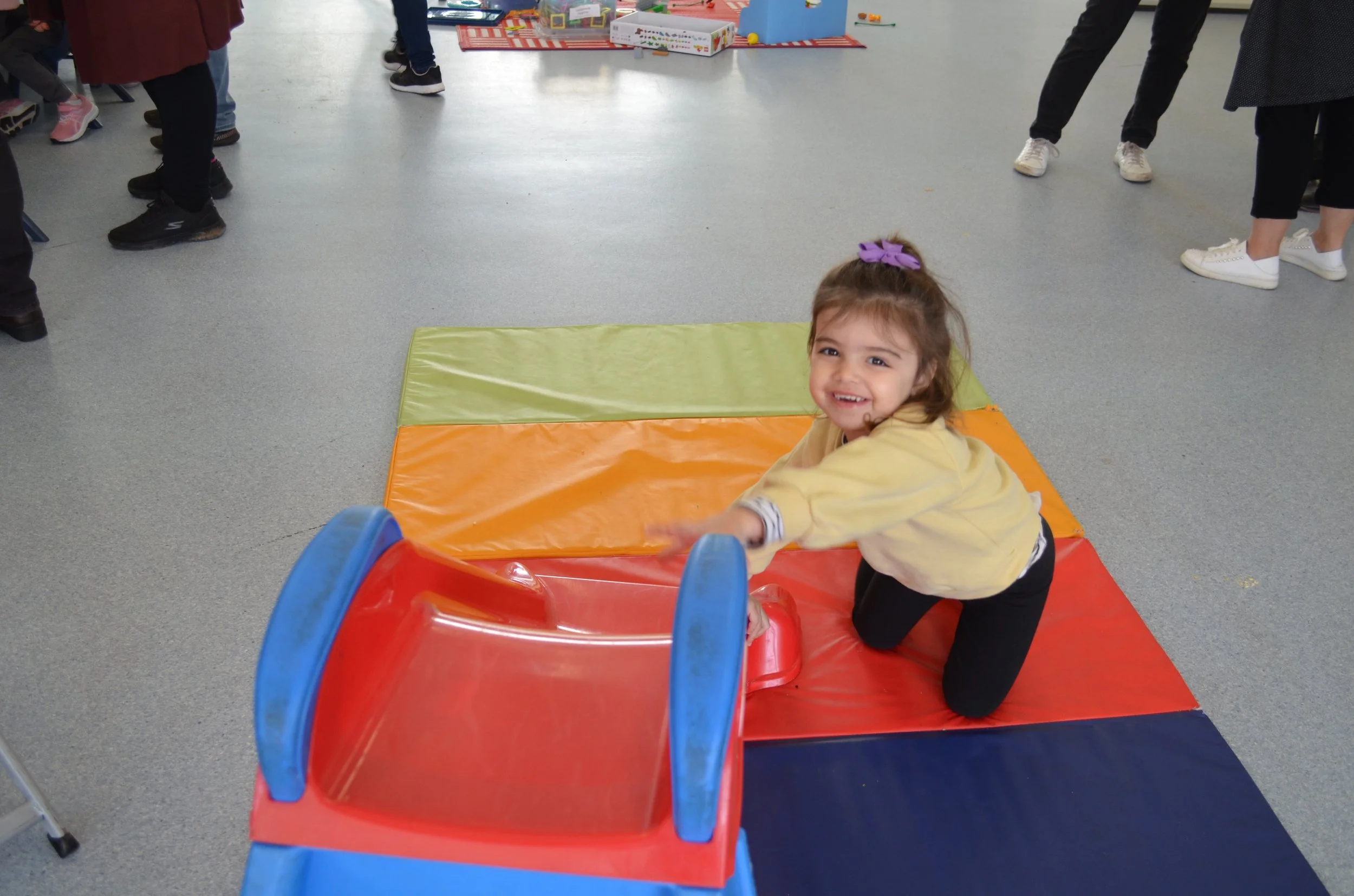 Marie talks about the different activities: painting, drawing, outside play, special occasions. Cakes are brought in for birthdays and today they make mother’s day cards.