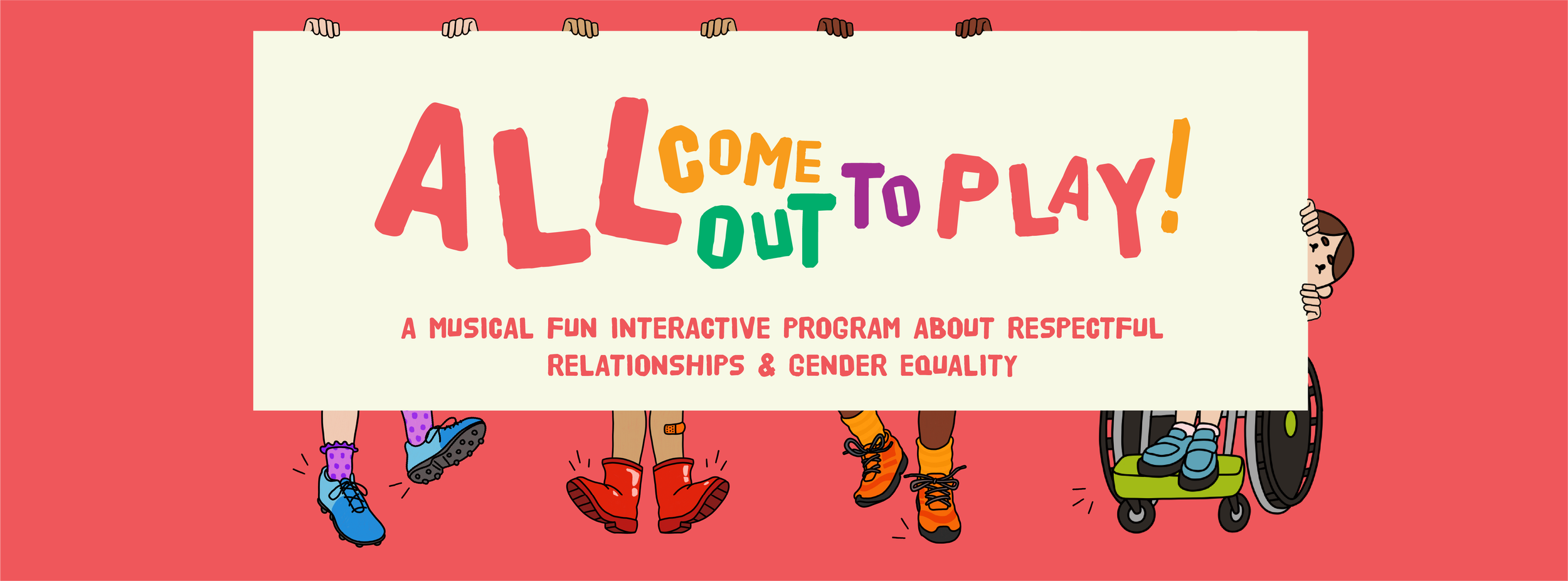 ALL Come Out to Play! is a unique, innovative evidence-based prevention initiative delivered in early childhood settings across Victoria. Our live music show and interactive story book uses a strong narrative, incorporating music, a little humour, movement, focus and intentional imagery, role modelling and discussion prompts to spark conversations about respectful relationships.